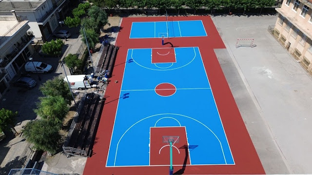 προαύλιο του γυμνασίου της Άμφισσας έγινε πλέον ένας σύγχρονος χώρος, όπου η